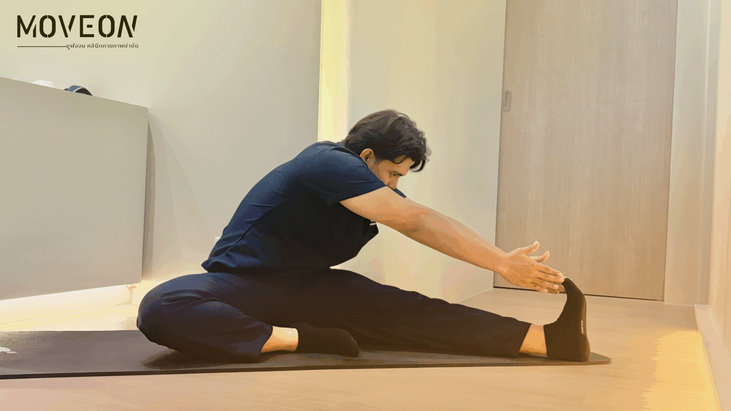 - นั่งเหยียดขาตรงข้างหนึ่งไปด้านหน้า