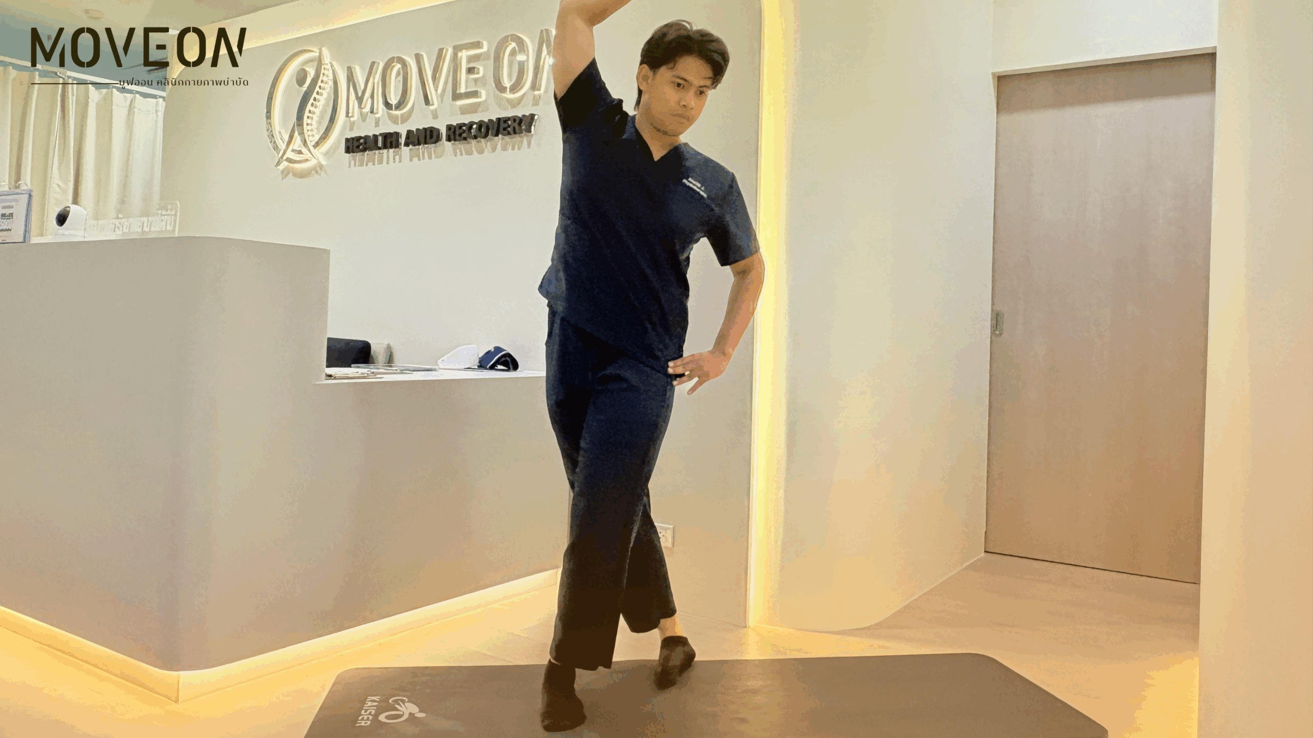 - เอียงตัวไปด้านข้างตรงขาที่อยู่ด้านหลัง