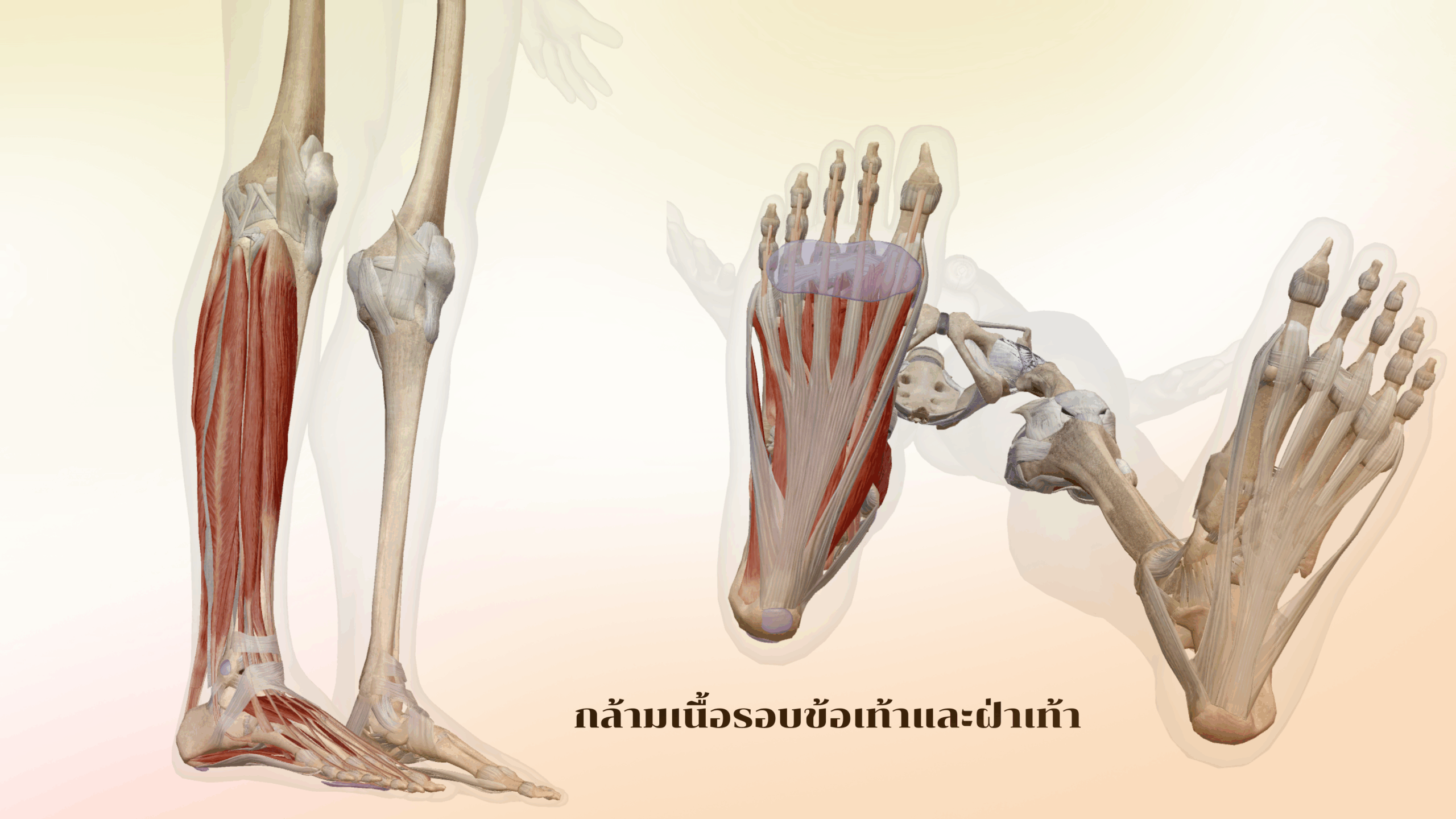 - กล้ามเนื้อที่ยืด: กล้ามเนื้อฝ่าเท้าและรอบข้อเท้า