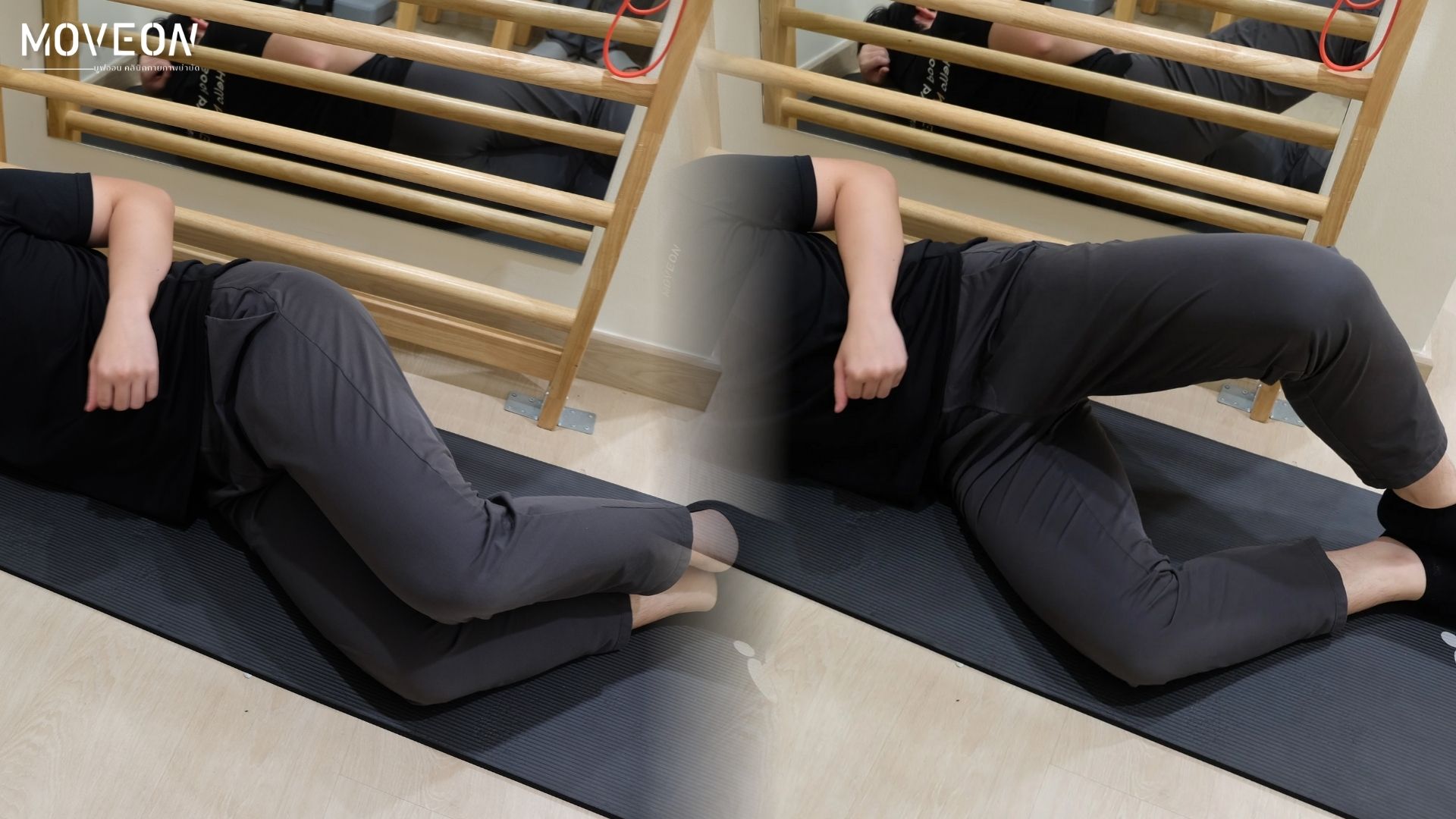 - Side-Lying Leg Raise / Clamshell → เสริม Gluteus medius คุมแนวเข่าไม่ให้ล้มเข้า