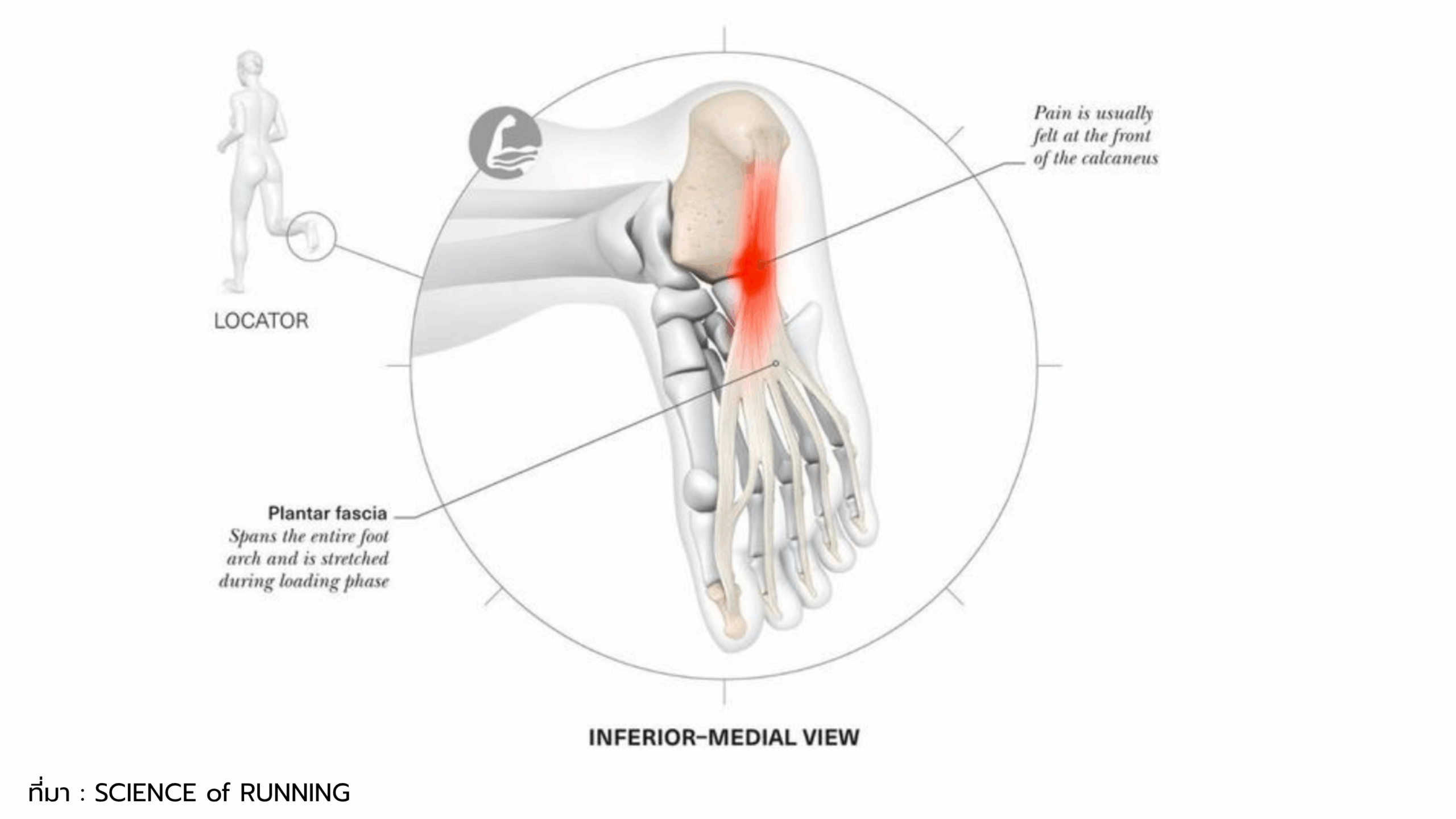- ลักษณะอาการ: ปวดฝ่าเท้าบริเวณส้น โดยเฉพาะตอนก้าวแรกหลังตื่นนอนหรือหลังพักนาน ๆ