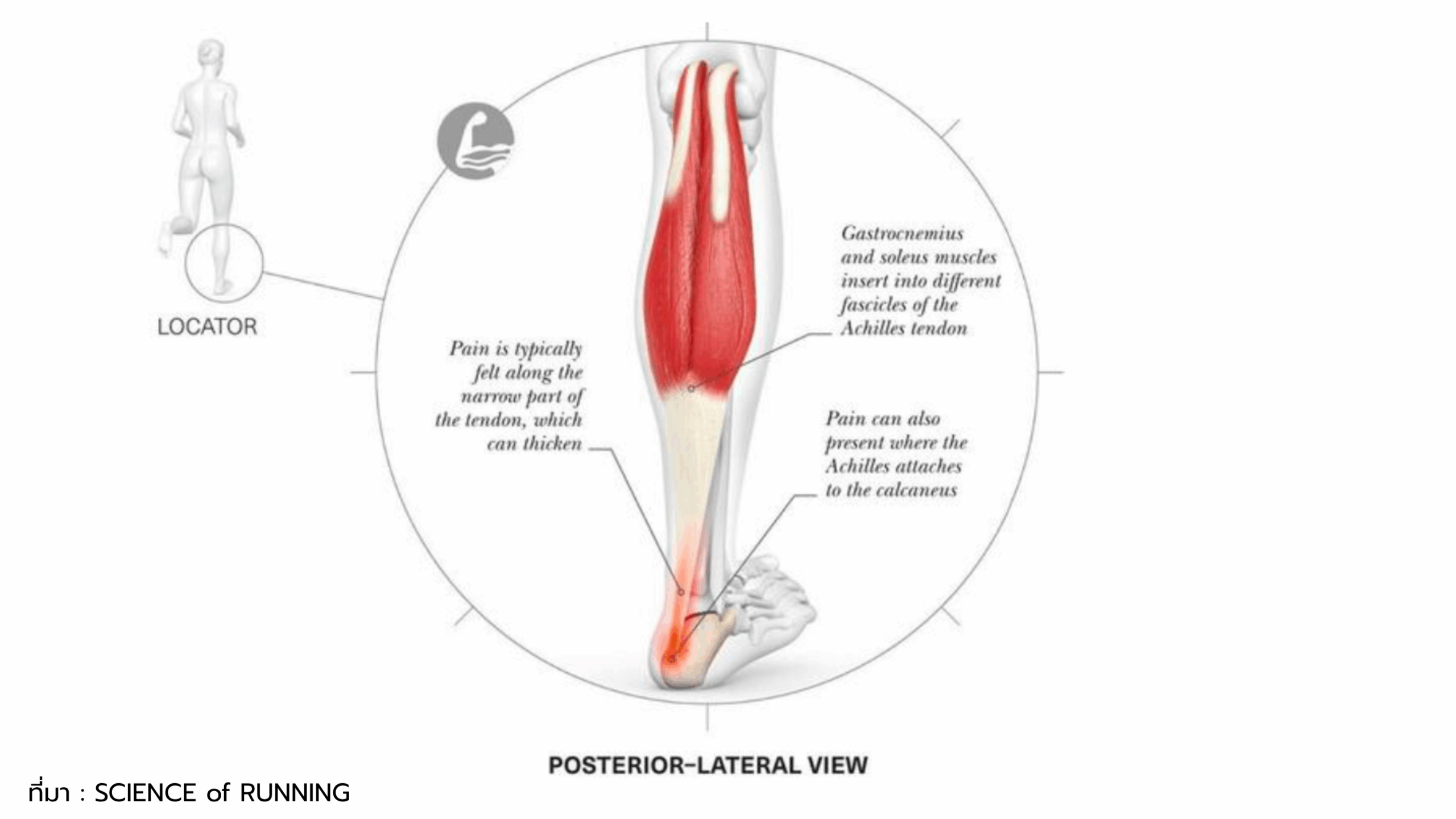 - ลักษณะอาการ: ปวดเอ็นร้อยหวาย โดยเฉพาะตอนเช้า หรือตอนเริ่มวิ่ง อาการอาจทุเลาลงเมื่อร่างกายอุ่นขึ้น
