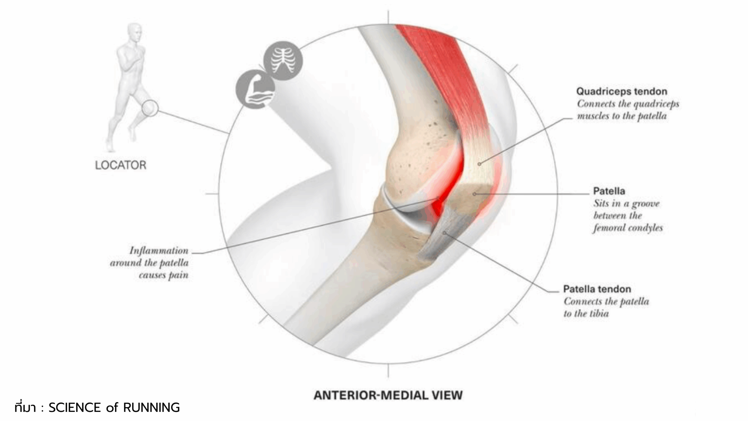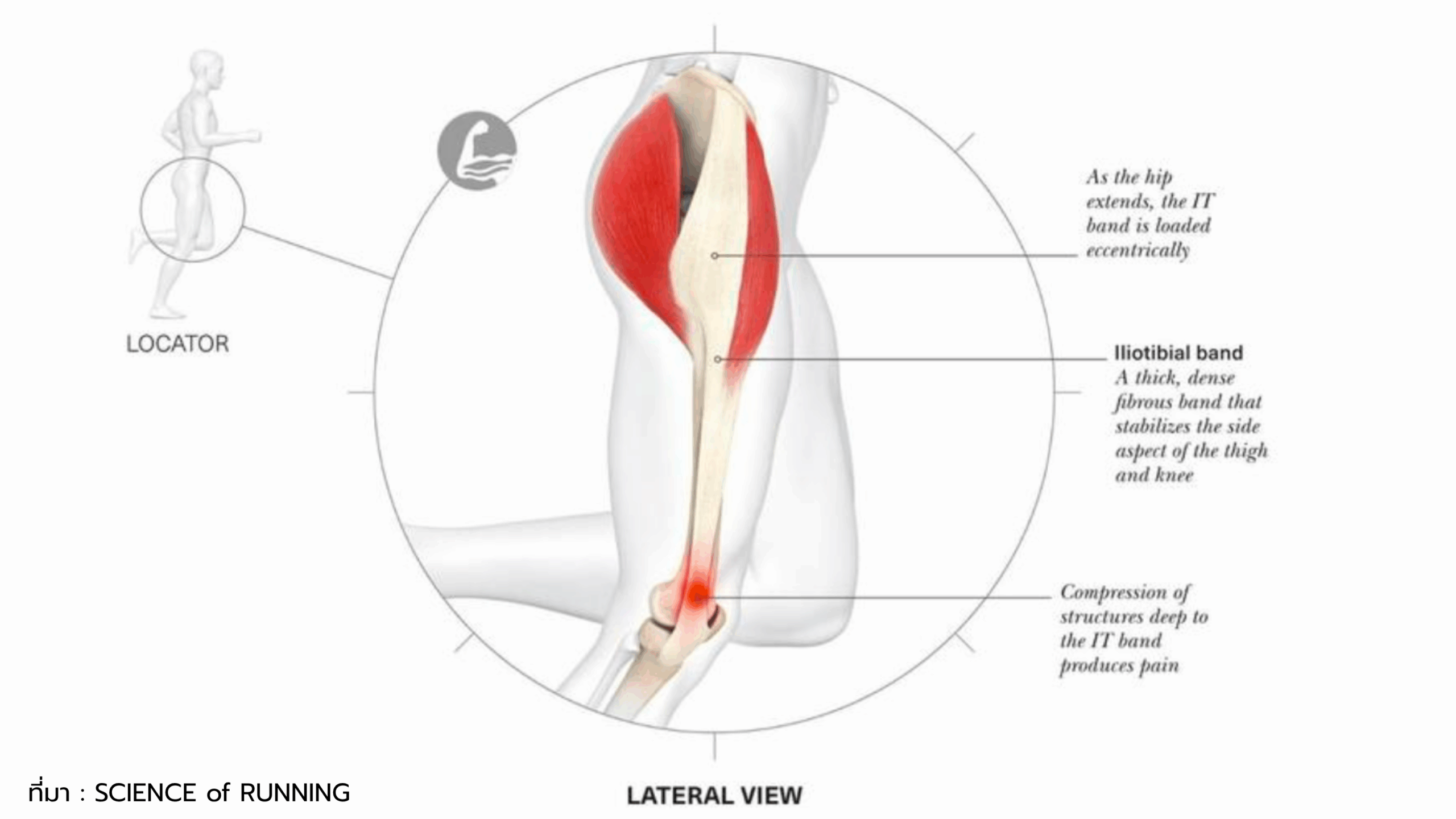 - ข้อควรรู้: เป็นหนึ่งในอาการเจ็บเข่าที่พบบ่อยในนักวิ่งมาราธอนและนักวิ่งระยะยาว