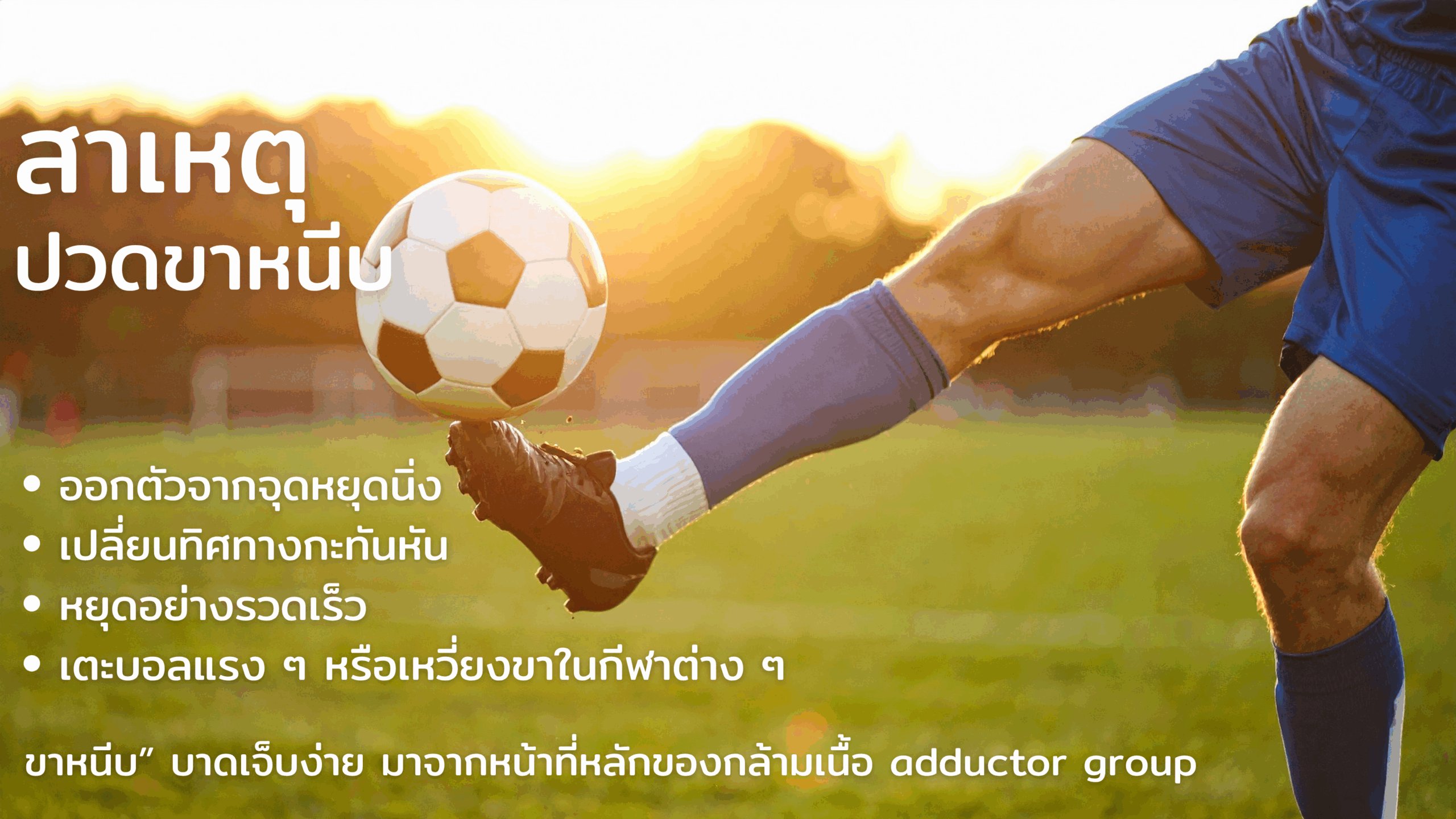 ต้นเหตุที่พบบ่อยที่สุดในนักเตะและกีฬาที่ต้องเปลี่ยนทิศทางเร็ว เกิดจากกล้ามเนื้อกลุ่ม Adductor ด้านในต้นขาทำงานหนักเกินไป